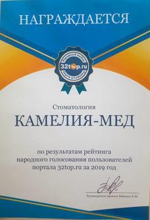 | Пользователи Яндекса и портала 32top.ru высоко оценили стоматологию «Камелия-Мед» |