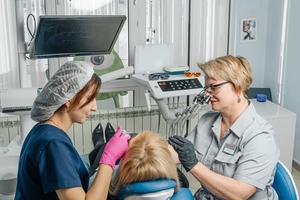При первичном осмотре врач полностью осматривает ротовую полость, определяет прикус, обращает внимание на состояние десен, оценивает состояние челюстных суставов, при необходимости проводит дополнительные исследования. Исходя из результата осмотра, пациента направляют к соответствующим специалистам. Благодаря тому, что у нас работают специалисты всех направлений, наши пациенты получают возможность прийти к полностью здоровой полости рта.